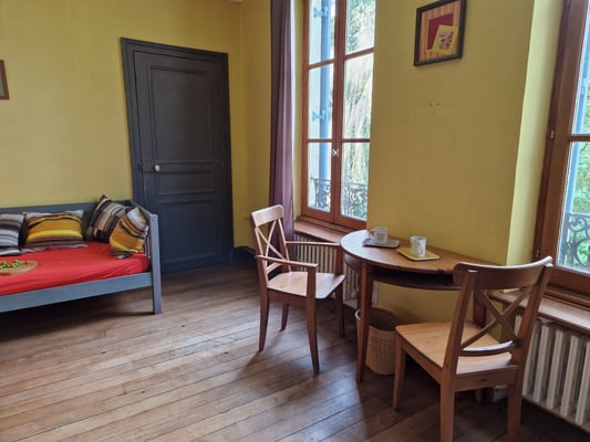 La salle d'eau, avec wc, communique avec la chambre.